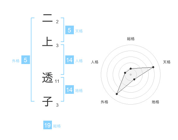二上 透子さんの天格は5画の4点!