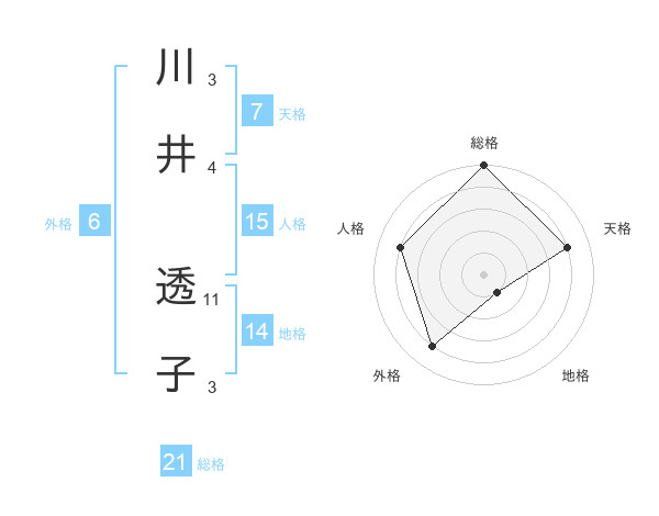 川井 透子さんの総格は21画の5点!