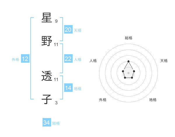星野 透子さんの人格は22画の1点!