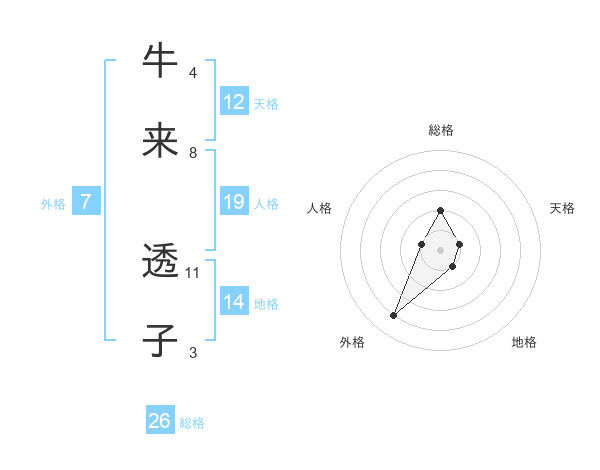 牛来 透子さんの総格は26画の2点!