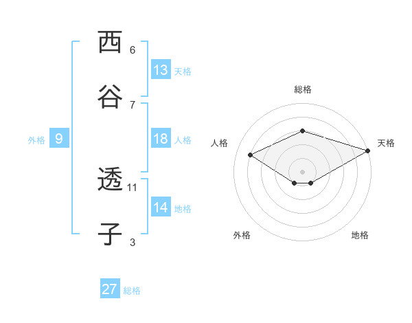 西谷 透子さんの総格は27画の3点!