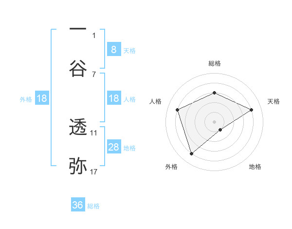 一谷 透弥さんを姓名の画数から五運を鑑定