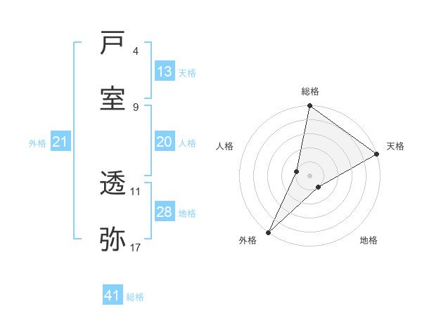 戸室 透弥さんを姓名の画数から五運を鑑定