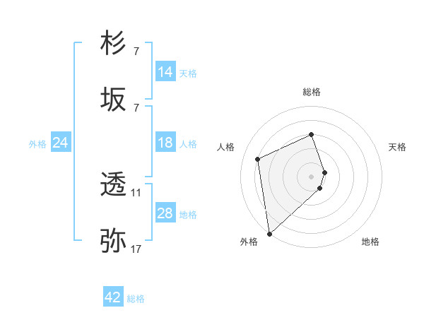 杉坂 透弥さんの総格は42画の3点!