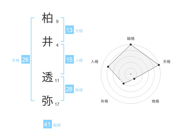 柏井 透弥さんの総格は41画の5点!