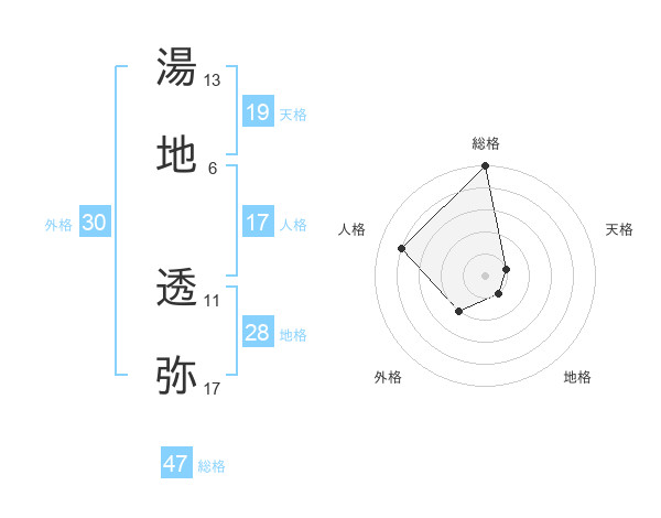 湯地 透弥さんを姓名の画数から五運を鑑定