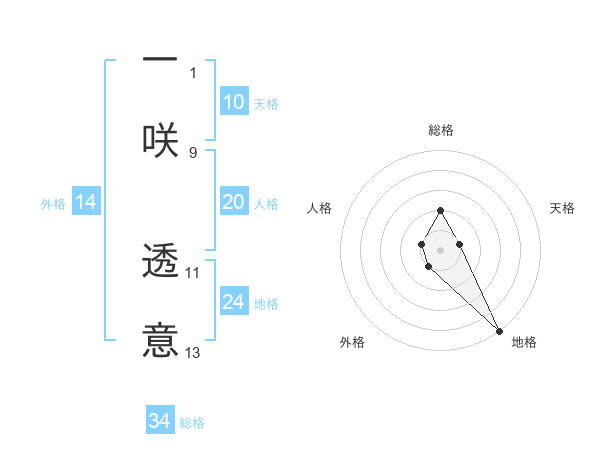 一咲 透意さんの総格は34画の2点!