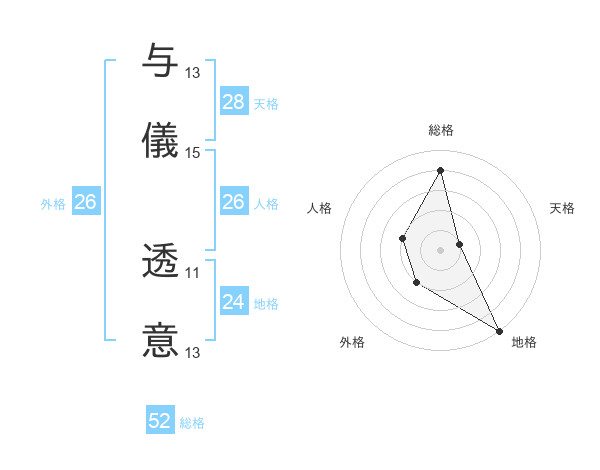 与儀 透意さんの総格は52画の4点!