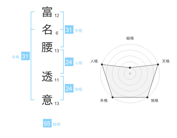 富名腰 透意さんの外格は31画の5点!