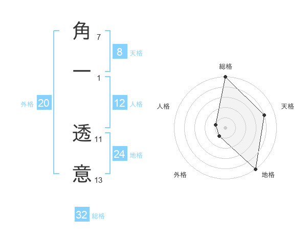 角一 透意さんの天格は8画の4点!