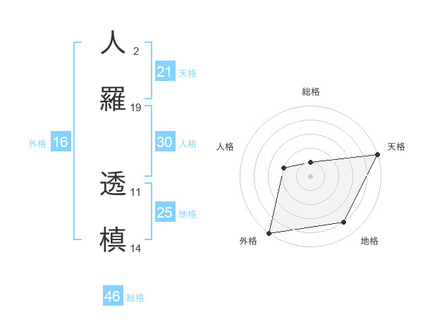 人羅 透槙さんの天格は21画の5点!
