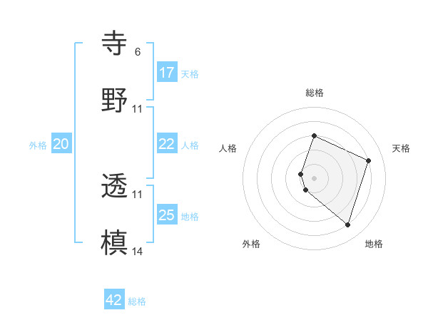 寺野 透槙さんを姓名の画数から五運を鑑定