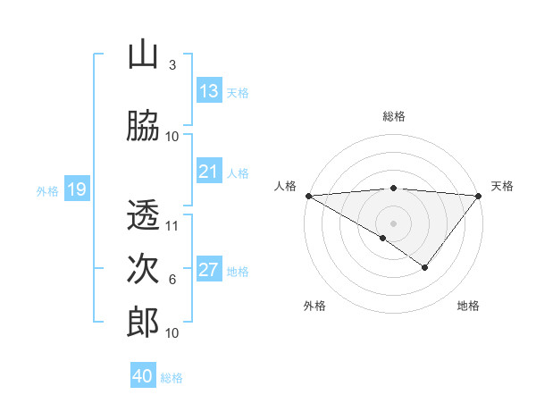 山脇 透次郎さんの天格は13画の5点!