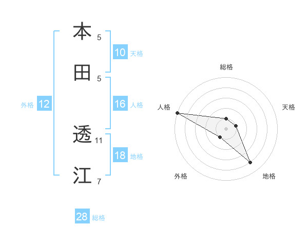 本田 透江さんの総格は28画の1点!