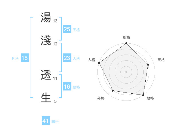 湯淺 透生さんを姓名の画数から五運を鑑定
