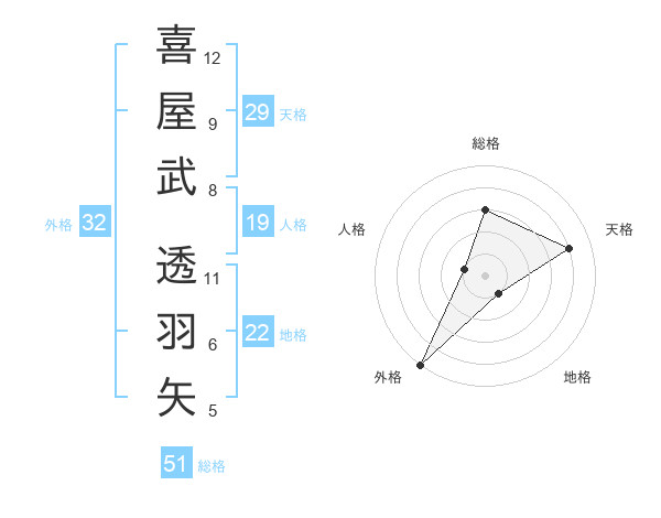 喜屋武 透羽矢さんを姓名の画数から五運を鑑定