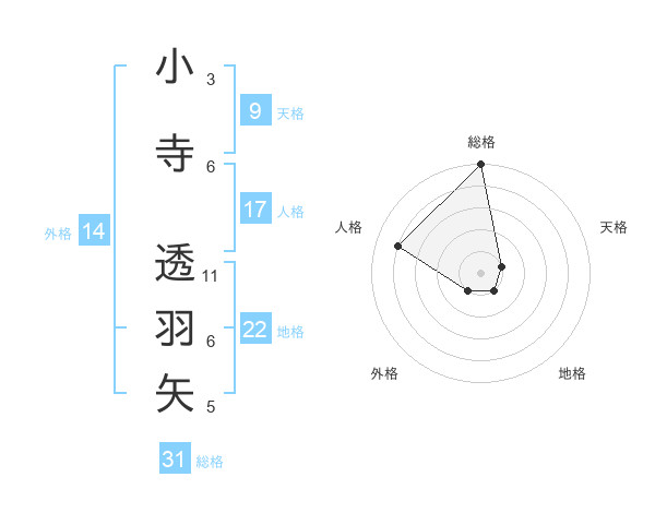 小寺 透羽矢さんの総格は31画の5点!