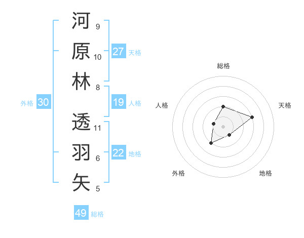 河原林 透羽矢さんを姓名の画数から五運を鑑定