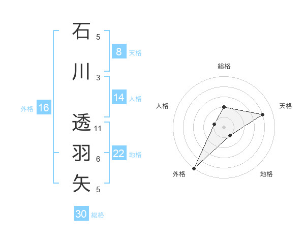 石川 透羽矢さんの総格は30画の2点!