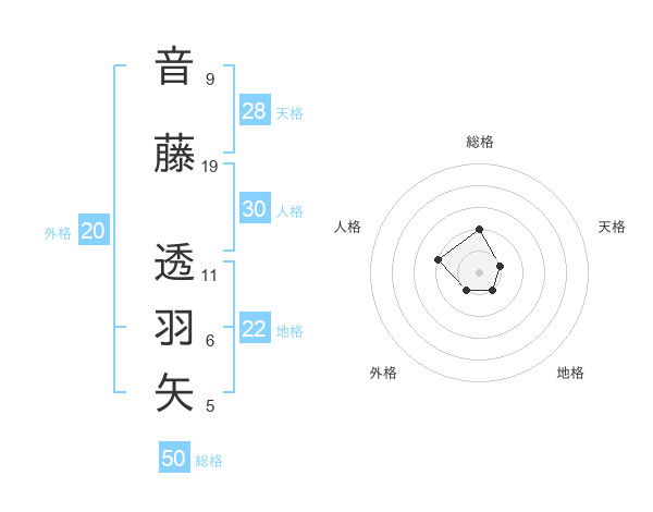 音藤 透羽矢さんを姓名の画数から五運を鑑定