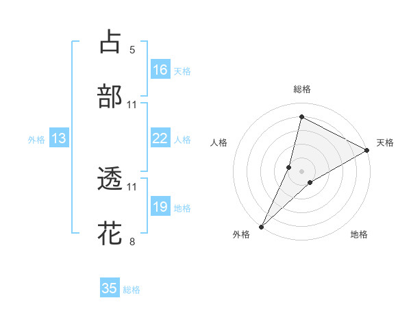 占部 透花さんの総格は35画の4点