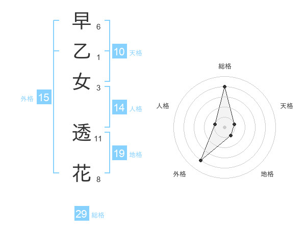 早乙女 透花さんの総格は29画の4点!