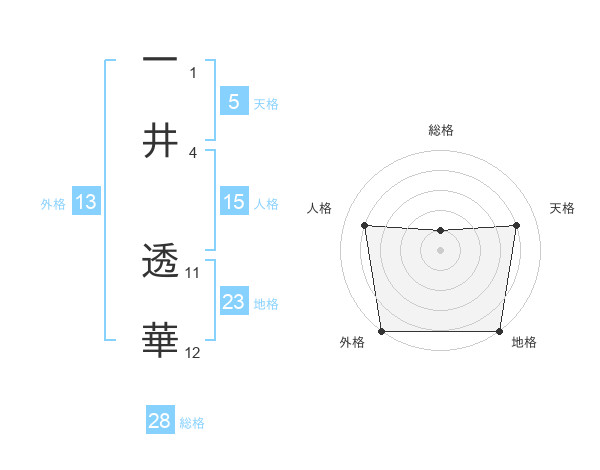 一井 透華さんの外格は13画の5点!
