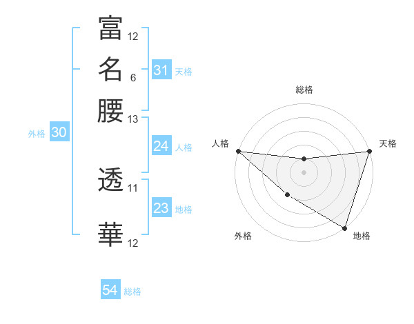 富名腰 透華さんの総格は54画の1点!