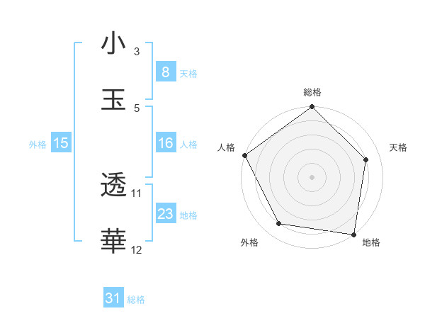 小玉 透華さんの総格は31画の5点!