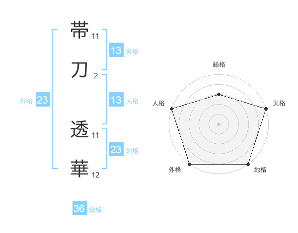 帯刀 透華さんを姓名の画数から五運を鑑定