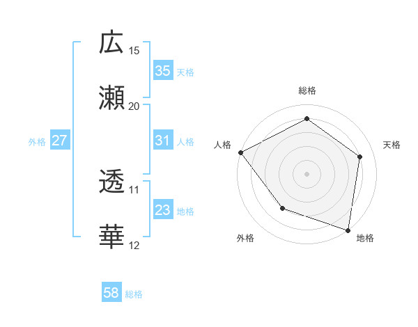 広瀬 透華さんの総格は58画の4点!