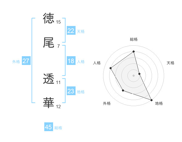 徳尾 透華さんの総格は45画の4点!