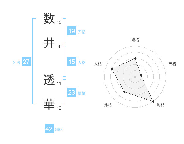 数井 透華さんの総格は42画の3点!