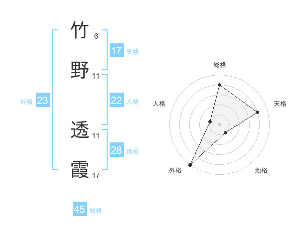 竹野 透霞さんの外格は23画の5点!