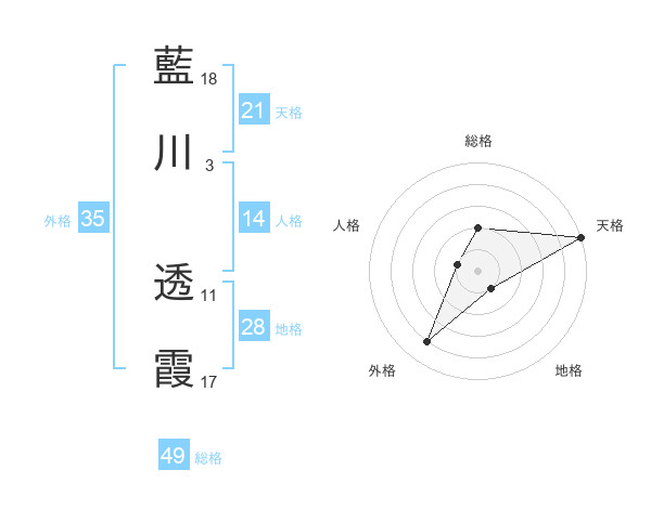 藍川 透霞さんを姓名の画数から五運を鑑定