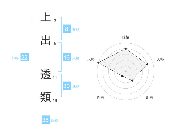 上出 透類さんの総格は38画の4点!