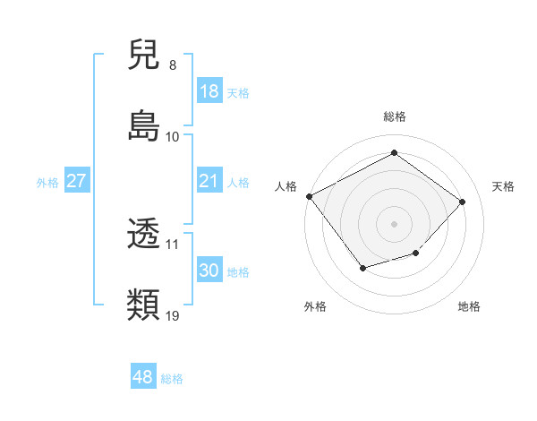 兒島 透類さんの総格は48画の4点!