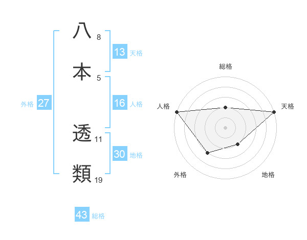 八本 透類さんの天格は13画の5点!
