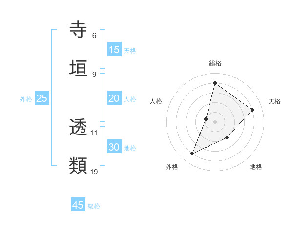 寺垣 透類さんを姓名の画数から五運を鑑定