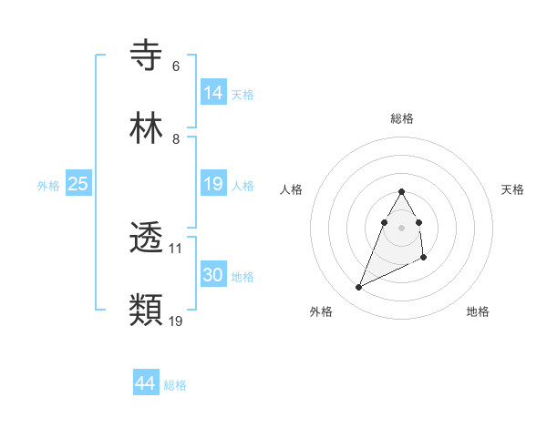 寺林 透類さんの総格は44画の2点!
