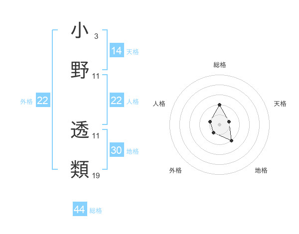 小野 透類さんの総格は44画の2点!