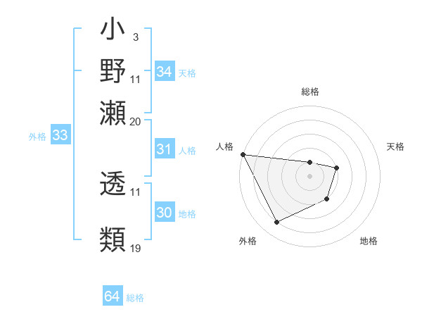 小野瀬 透類さんの人格は31画の5点!