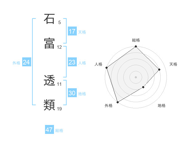 石富 透類さんの総格は47画の5点!