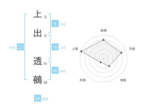 上出 透鵺さんを姓名の画数から五運を鑑定