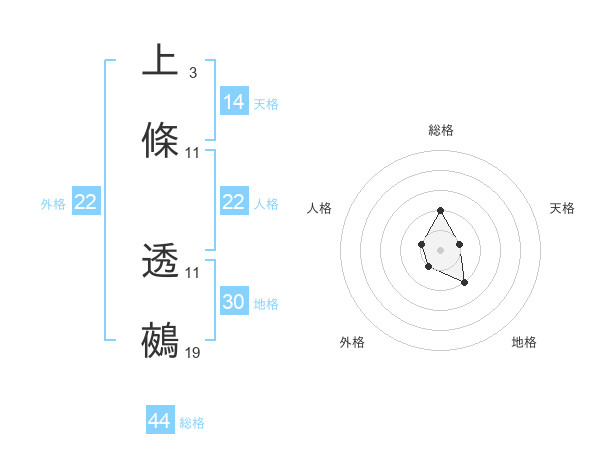 上條 透鵺さんの総格は44画の2点!