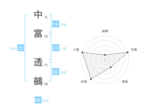 中富 透鵺さんを姓名の画数から五運を鑑定