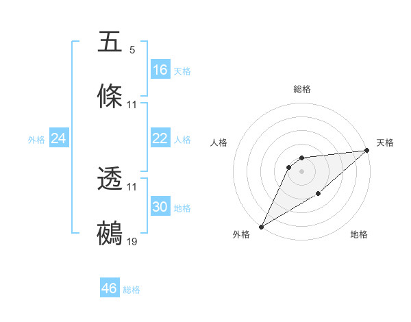 五條 透鵺さんを姓名の画数から五運を鑑定