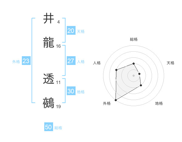井龍 透鵺さんの総格は50画の2点!