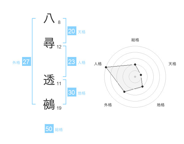 八尋 透鵺さんの総格は50画の2点!