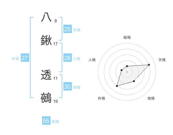 八鍬 透鵺さんの総格は55画の1点!